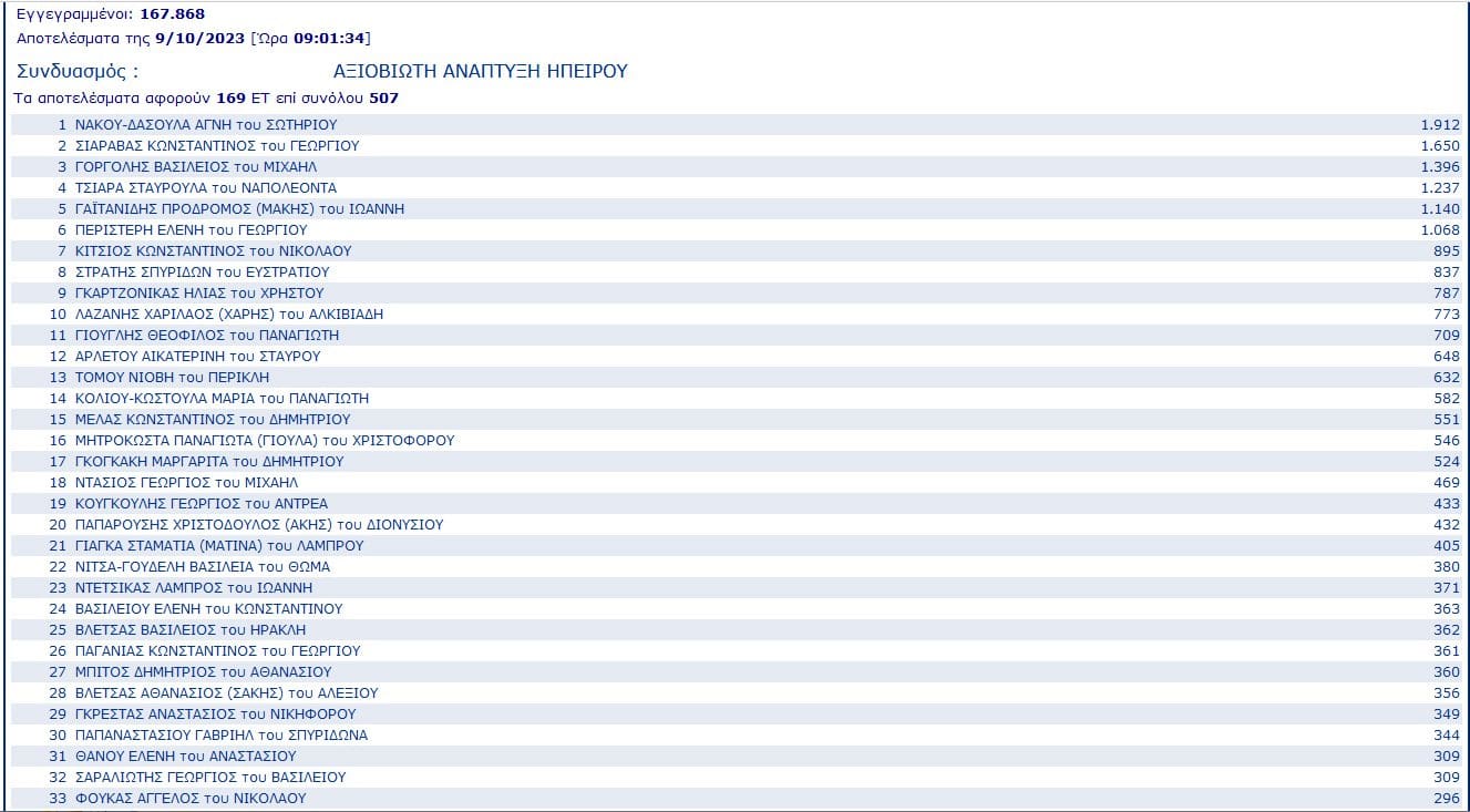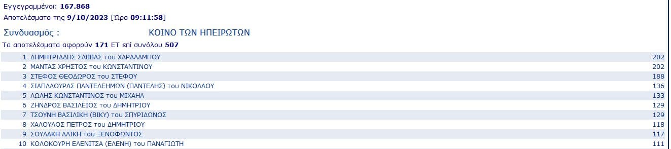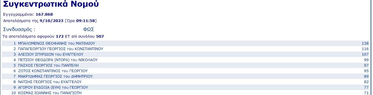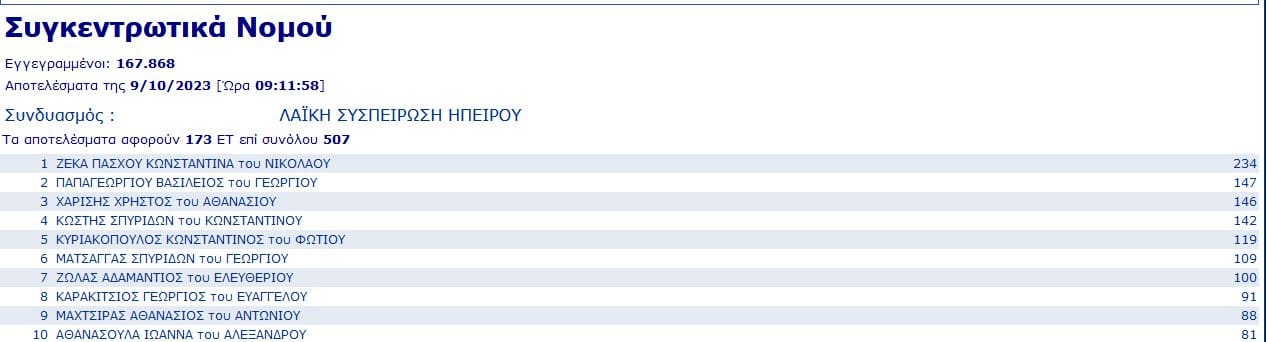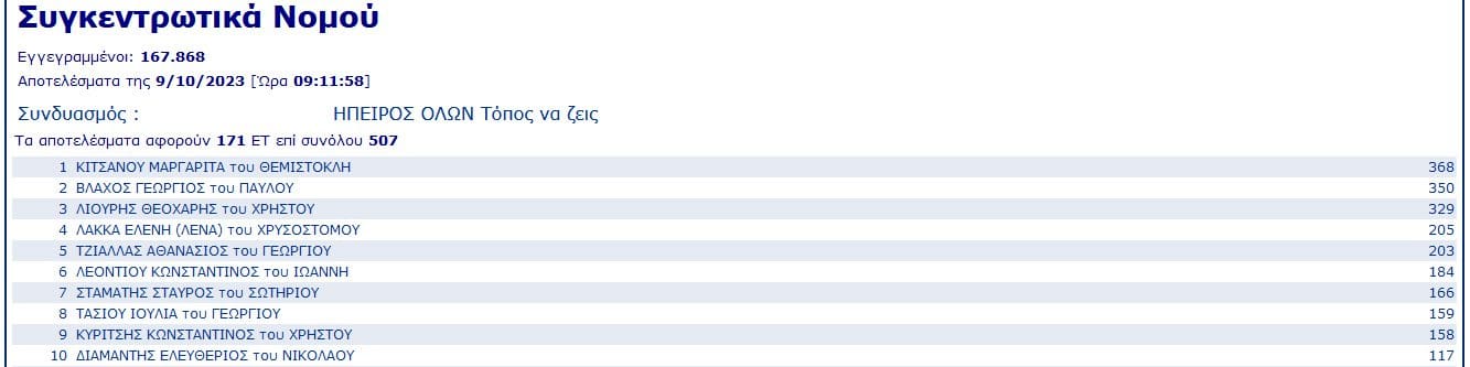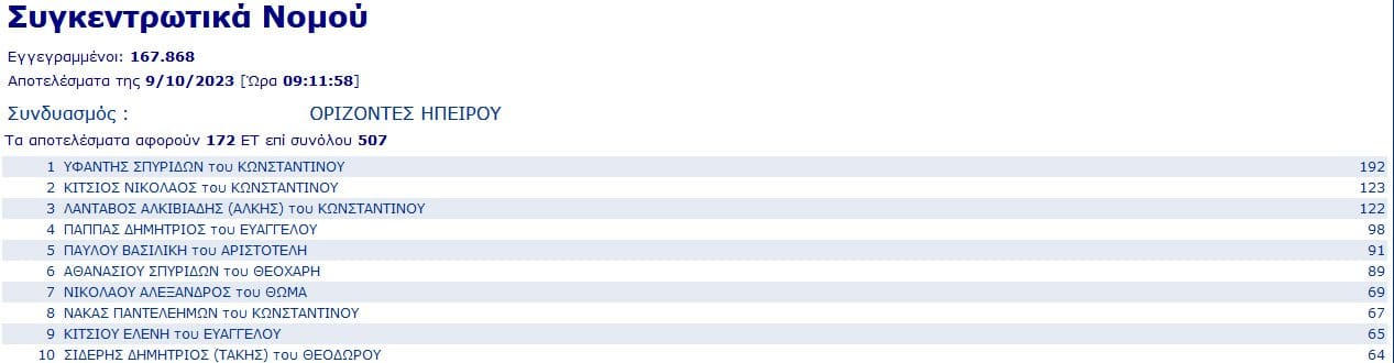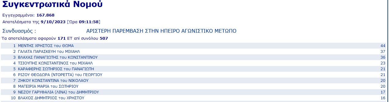 Οι 10 πρώτοι σε σταυρούς σε 172 από τα 507 ε.τ. στην παράταξη του κ. Ριζόπουλου