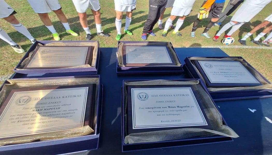 Από τις ομάδες δόθηκαν αναμνηστικές πλακέτες στην οικογένεια του εκλιπόντος, σύζυγο και παιδιά.