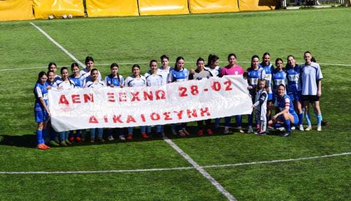 Με πανό μνήμης και αιτήματος απονομής δικαιοσύνης για τα θύματα των Τεμπών, μπήκαν οι Ομάδες Ποδοσφαίρου Γυναικών ΠΑΣ ΓΙΑΝΝΙΝΑ και Α.Ο. Καβάλα ’86 στον αγωνιστικό χώρο, για τον μεταξύ τους αγώνα.