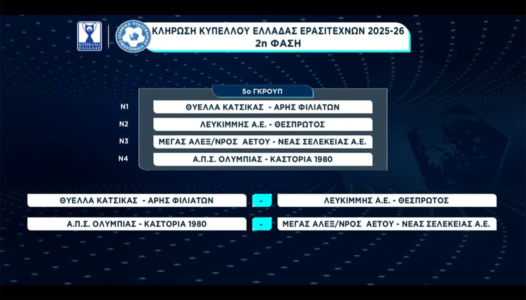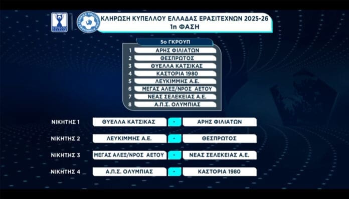 Τον αντίπαλό της στο κύπελλο Ερασιτεχνών Ελλάδος έμαθε η Θύελλα Κατσικά, η οποία θα αντιμετωπίσει στο γήπεδό της σε νοκ-άουτ αγώνα τον Άρη Φιλιατών, ομάδα Γ’ Εθνικής. Δύσκολο έργο για τους “ερυθρόλευκους”, οι οποίοι όμως θα προσπαθήσουν να εκμεταλλευτούν τη δύναμη της έδρας τους.
