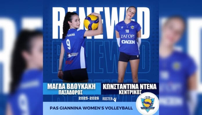 Ανανεώσεων συνέχεια για τον ΠΑΣ Γιάννινα WVC με δύο ακόμα κορίτσια να παραμένουν στο “κυανόλευκο” ρόστερ, την πασαδόρο Μάγδα Βδουκάκη και την κεντρική Κωνσταντίνα Ντένα.