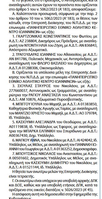 Νέος πρόεδρος θα είναι ο δικηγόρος κ. Κωνσταντίνος Γκαρτζονίκας, με αναπληρωτή πρόεδρο τον κ. Ηλία Ντόντη, απόστρατο αξιωματικό.