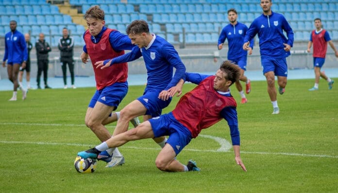 Το πρόγραμμα της προπόνησης σήμερα, μετά την προθέρμανση, είχε passing drill σε μεγάλους χώρους, τακτικό κομμάτι θέσεων και για το τελείωμα οικογενειακό διπλό 11vs11, με χρήση όλου του γηπέδου.