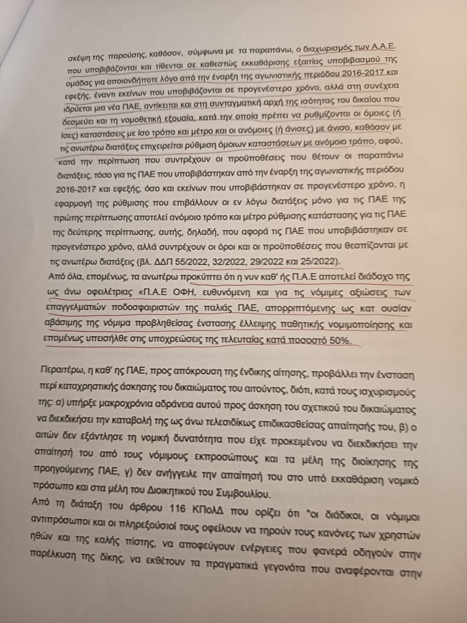 Ακολουθούν αποσπάσματα από την απόφαση του Διαιτητικού Δικαστηρίου της ΕΠΟ: