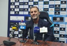31’ Απευθείας εκτέλεση φάουλ του Μπάκου, απέκρουσε στο δεξί του «παραθυράκι» ο Μπατζηκώστας.