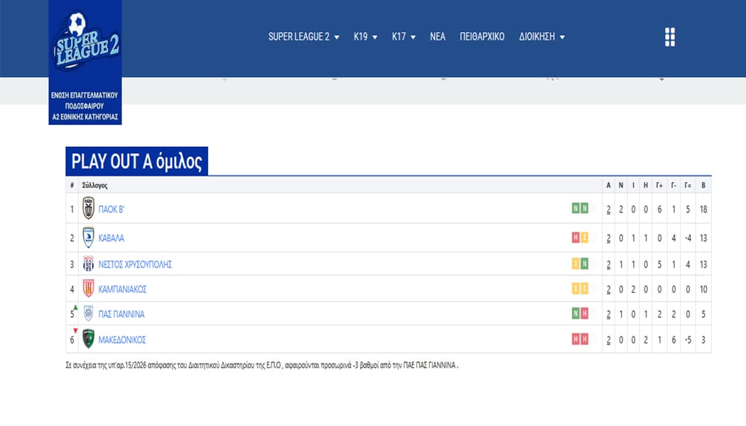 Απομένει μέσα στην ημέρα να επιστραφούν και οι 3 βαθμοί που είχαν αφαιρεθεί λόγω της προσφυγής Κύρκου, οπότε ο ΠΑΣ Γιάννινα θα εμφανίζεται και πάλι με την κανονική του βαθμολογία, τους 8 δηλαδή βαθμούς.