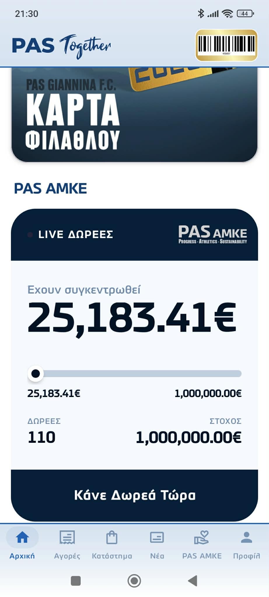 Πέραν αυτών όμως, η μπάλα πάει και στην… εξέδρα, αφού ενεργοποιήθηκαν οι δωρεές από φιλάθλους στην PAS AMKE μέσω της εφαρμογής PAS together, όπου όσοι έχουν την εφαρμογή μπορούν να καταθέτουν εύκολα από το κινητά τους όσα χρήματα θέλουν.