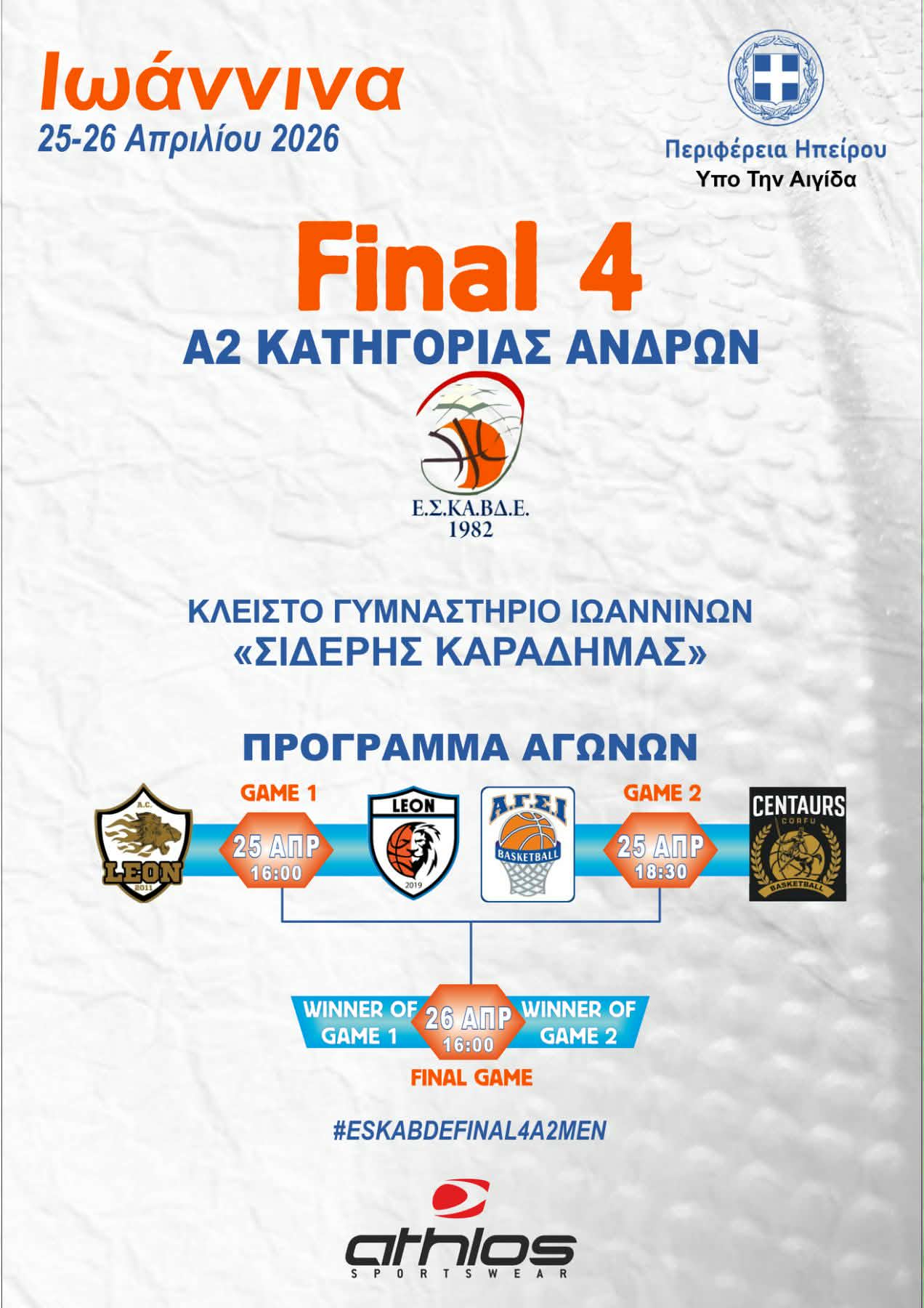 Ανδρών – Ημιτελικός Final Four Α2 ΕΣΚΑΒΔΕ (16.00): Λέων Μεσολογγίου – Λέων Κέρκυρας