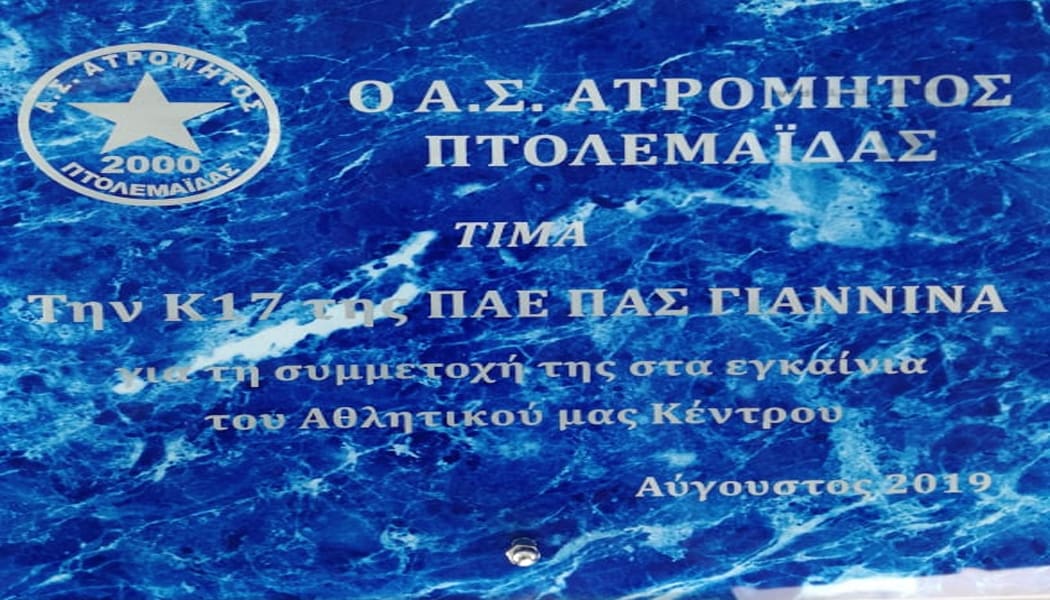 Στα εγκαίνια του νέου αθλητικού κέντρου του Ατρομήτου Πτολεμαΐδας ήταν καλεσμένη η Κ17 του ΠΑΣ Γιάννινα, η οποία έλαβε μέρος σε τουρνουά με την τοπική ομάδα και την αντίστοιχη του ΠΑΟΚ.