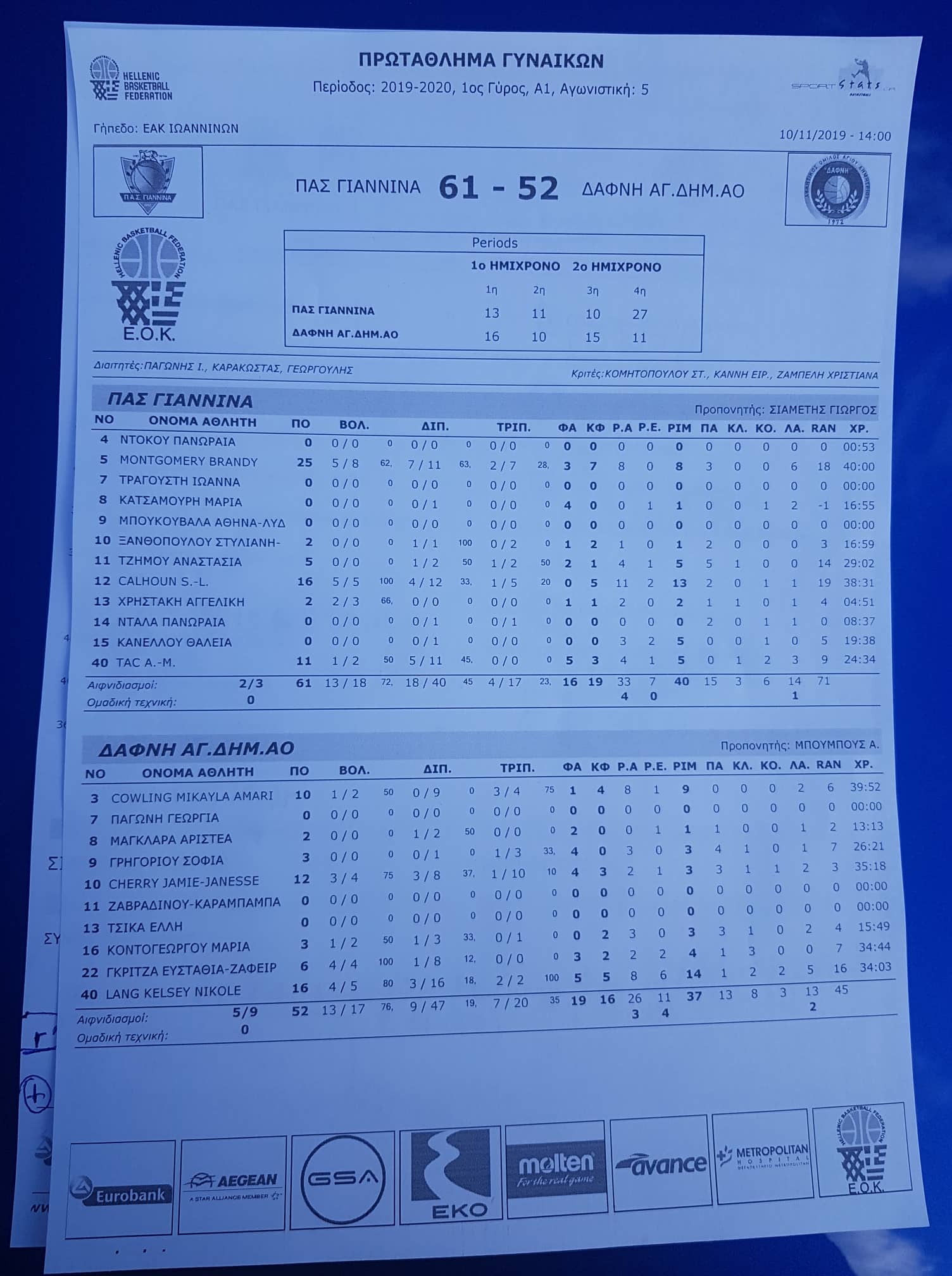 Σ’ ένα δύσκολο παιχνίδι που ήταν ντέρμπι από την αρχή, δύο ήταν τα “κλειδιά” μίας μεγάλης νίκης του ΠΑΣ Γιάννινα WBC επί της Δάφνης Αγίου Δημητρίου. Το πρώτο ήταν η αποχώρηση της Λανγκ,  με 5 φάουλ  στο 34′, κορυφαίας ως τότε από τη Δάφνη (σ.σ. είχε αποχωρήσει ήδη και η Τακ του ΠΑΣ επίσης με 5 φάουλ), αλλά αυτό που έδωσε τη νίκη ήταν τα 4′ και 51” συμμετοχής της νεαρής Αγγελίνας Χρηστάκη, η οποία μπήκε με καθαρό μυαλό, έβλεπε γήπεδο, έβαλες όλες τις συμπαίκτριές της μέσα στο κλίμα του παιχνιδιού και τους έδωσε ουσιαστική ψυχολογία για να φτάσουν στην ανατροπή, καθώς για 3 δεκάλεπτα ο ΠΑΣ ήταν πίσω στο σκορ.