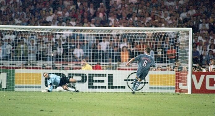 Ο, δε, τελικός έμελλε να είναι ο πρώτος και τελευταίος που κρίθηκε από το «χρυσό γκολ», κανονισμός που ίσχυε τότε: όποιος σκόραρε την παράταση, το ματς τελείωνε: ο Πάτρικ Μπέργκερ με πέναλτι στο 59΄ λεπτό είχε ανοίξει το σκοερ αλλά ο Ολιβερ Μπίερχοφ στο 73’ και στο 95’ της παράτασης… ξέρανε τους, πρωτάρηδες σε τελικό, Τσέχους.