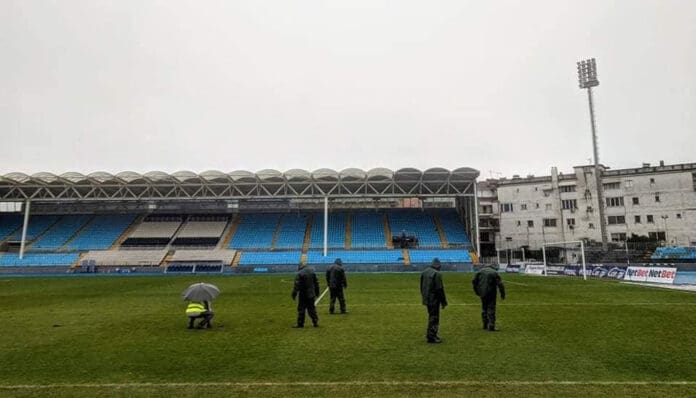 Άνοιξαν οι ουρανοί χθες στη διάρκεια του αγώνα του ΠΑΣ Γιάννινα με τον Απόλλωνα Σμύρνης και ειδικά στο β’ μέρος η βροχή ήταν καταρρακτώδης δημιουργώντας “λίμνες” μέσα στον αγωνιστικό χώρο, που δυσκόλευαν τη σωστή κυκλοφορία της μπάλας. Αναπόφευκτα, δηλαδή, κολλούσε σε κάποια σημεία. Παρ’ όλα αυτά οι συνθήκες διατηρήθηκαν οριακές για τη διεξαγωγή του αγώνα και μάλιστα χωρίς να λασπώσει ιδιαίτερα το γήπεδο.