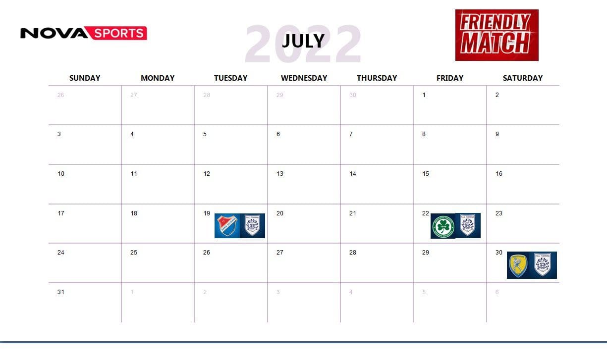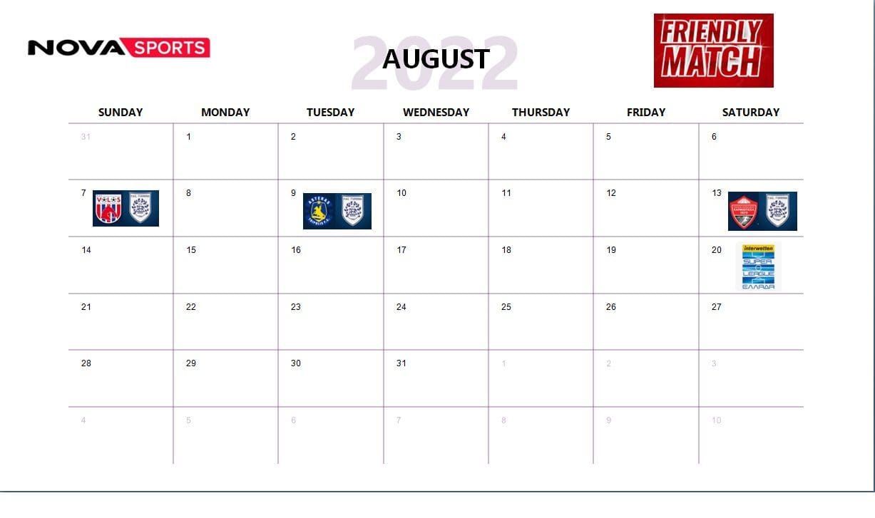 Η NOVA συμπεριέλαβε στο πρόγραμμά της τα φιλικά αυτά που είναι προγραμματισμένα στις 19, 22 και 30 Ιουλίου, καθώς και στις 7, 9 και 13 Αυγούστου.