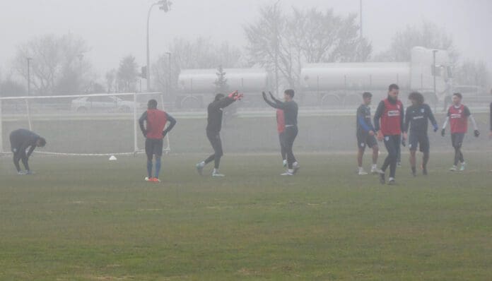Έτσι, λοιπόν, η δουλειά συνεχίζεται εντατικά από τον κ. Στάικο και τους παίκτες του ακόμα και υπό δυσμενείς καιρικές συνθήκες, λόγω της πυκνής ομίχλης που υπήρχε σήμερα.