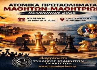 Το Διοικητικό Συμβούλιο του Συλλόγου Ιωαννιτών Σκακιστών ανακοινώνει τη διεξαγωγή του ετήσιου Μαθητικού Πρωταθλήματος σκάκι, το οποίο θα πραγματοποιηθεί την Κυριακή 29 Μαρτίου 2026...